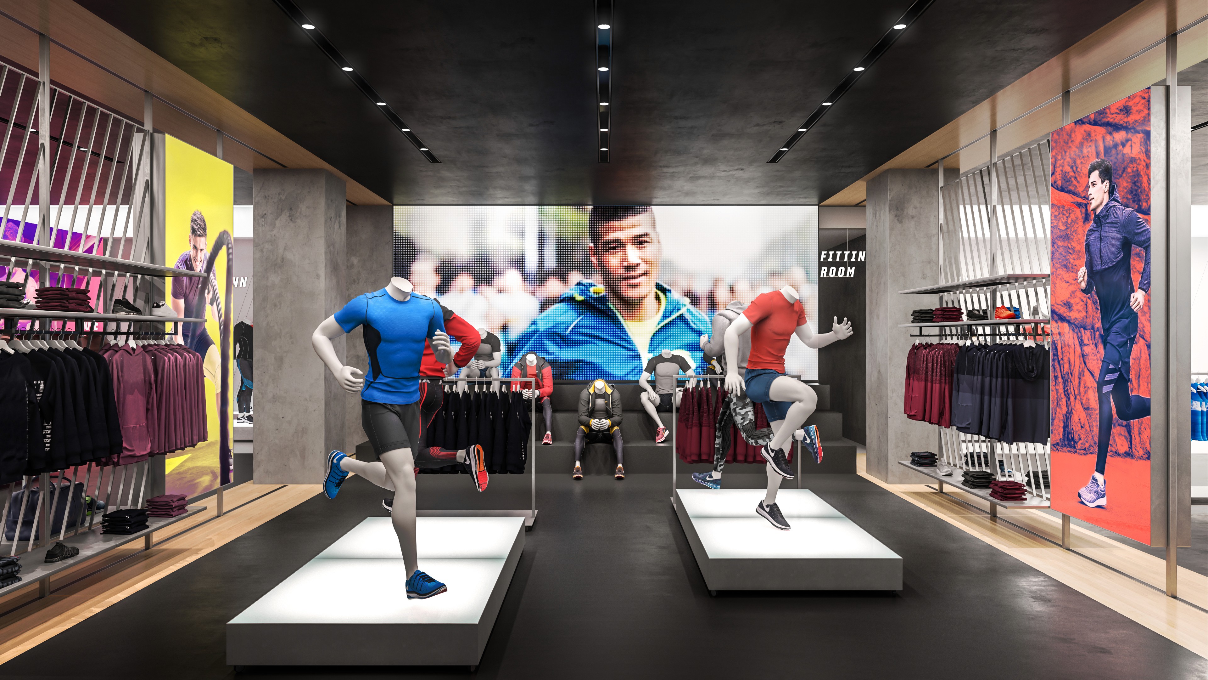 Voor de flagshipstore van Anta heb ik 3D-impressies gemaakt die de krachtige en sportieve identiteit van het merk tot uiting brengen