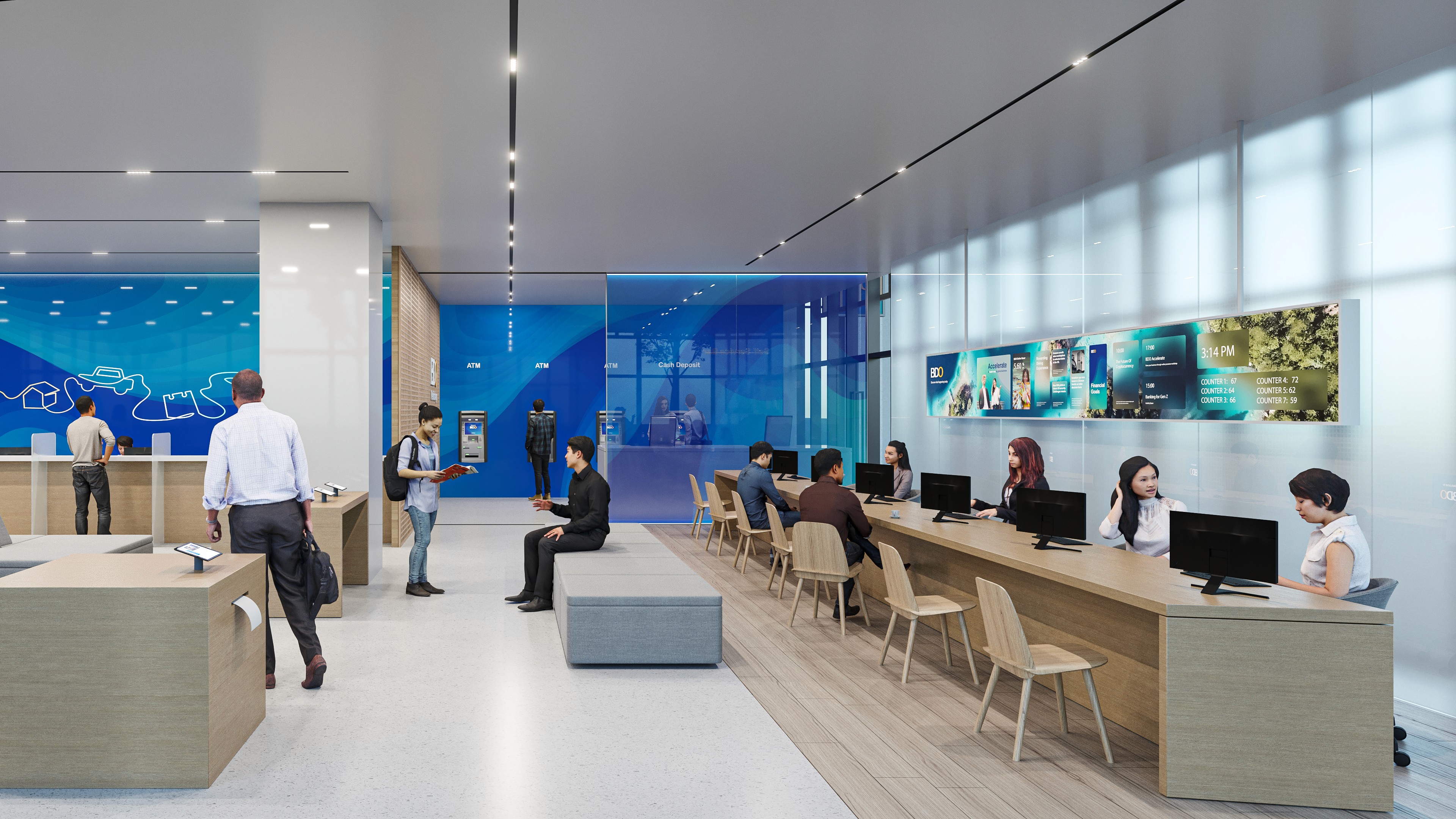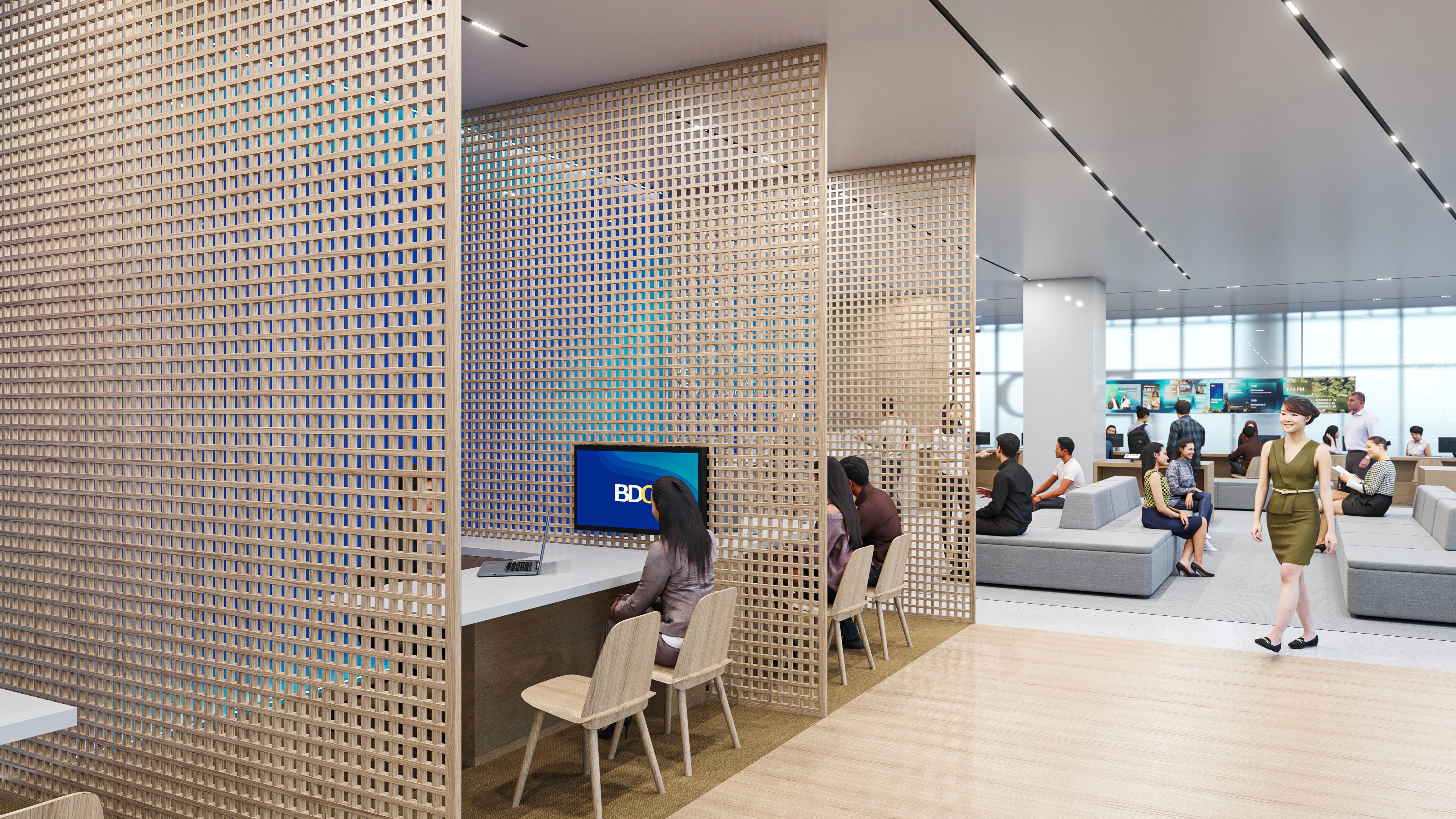 De visualisaties laten een eigentijdse bankomgeving zien met een heldere, open uitstraling. Door het gebruik van lichte materialen, strakke lijnen en een overzichtelijke indeling ontstaat een toegankelijke en representatieve ruimte die past bij het internationale karakter van BDO en de dynamische omgeving van Singapore.