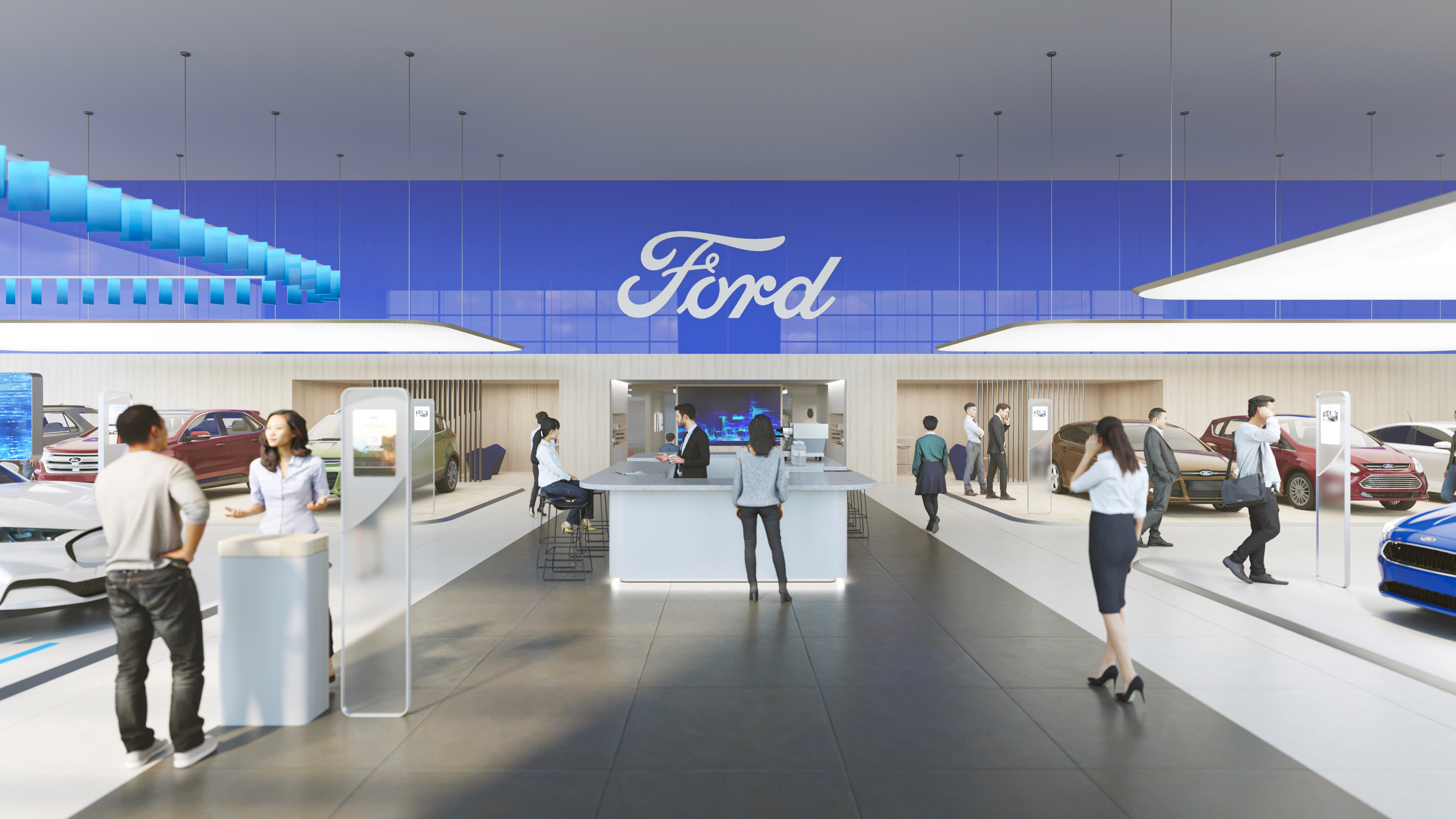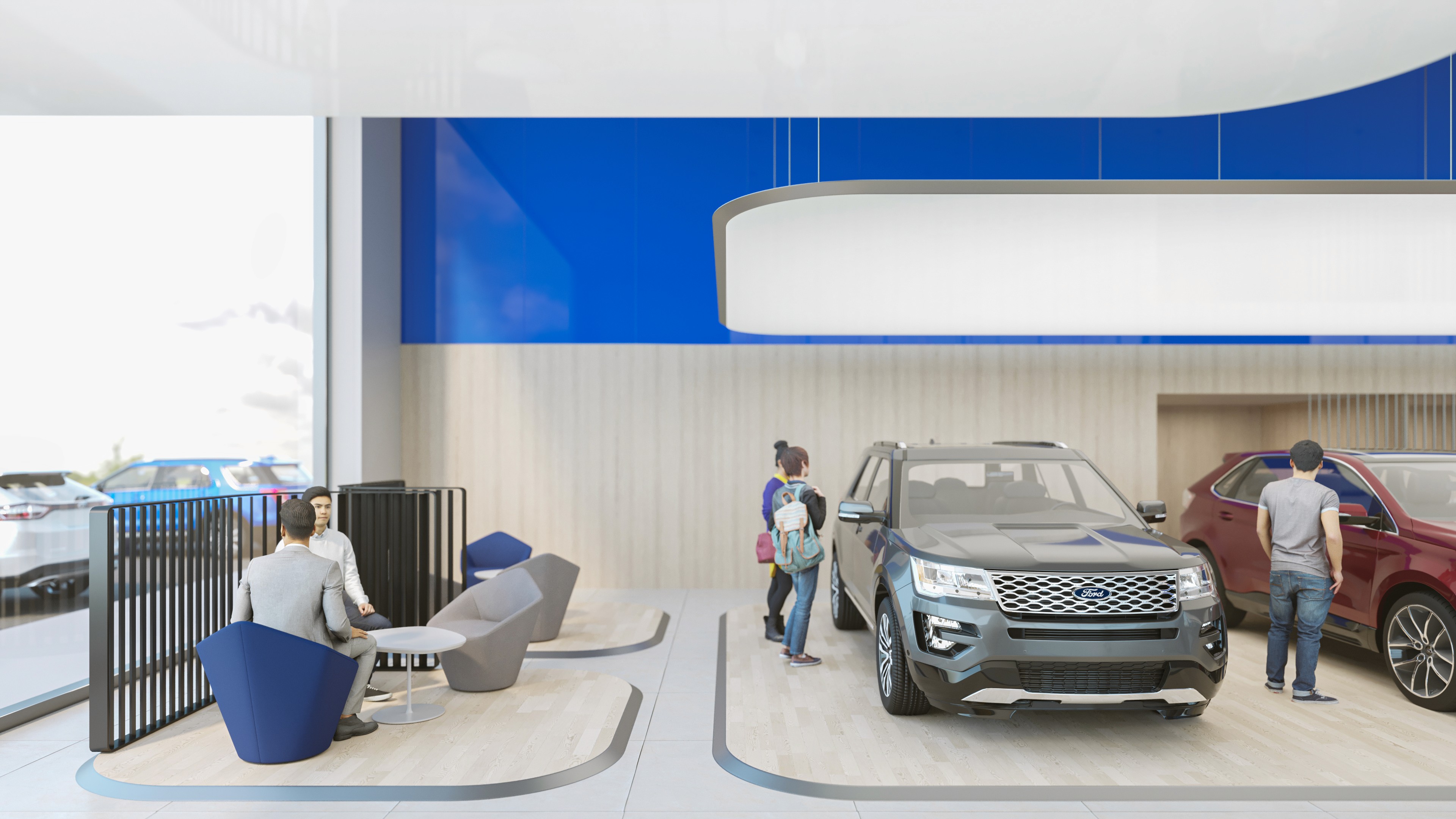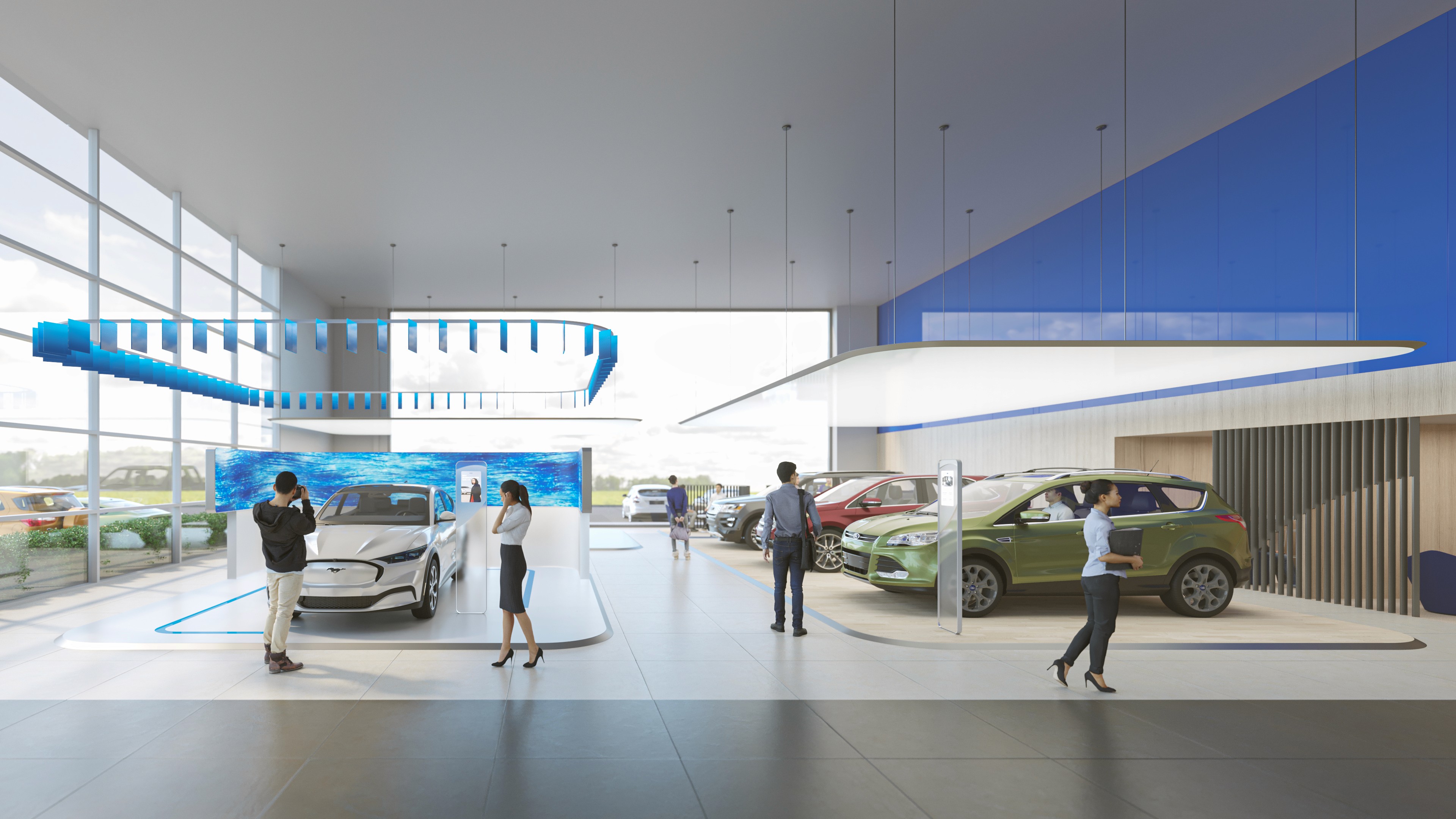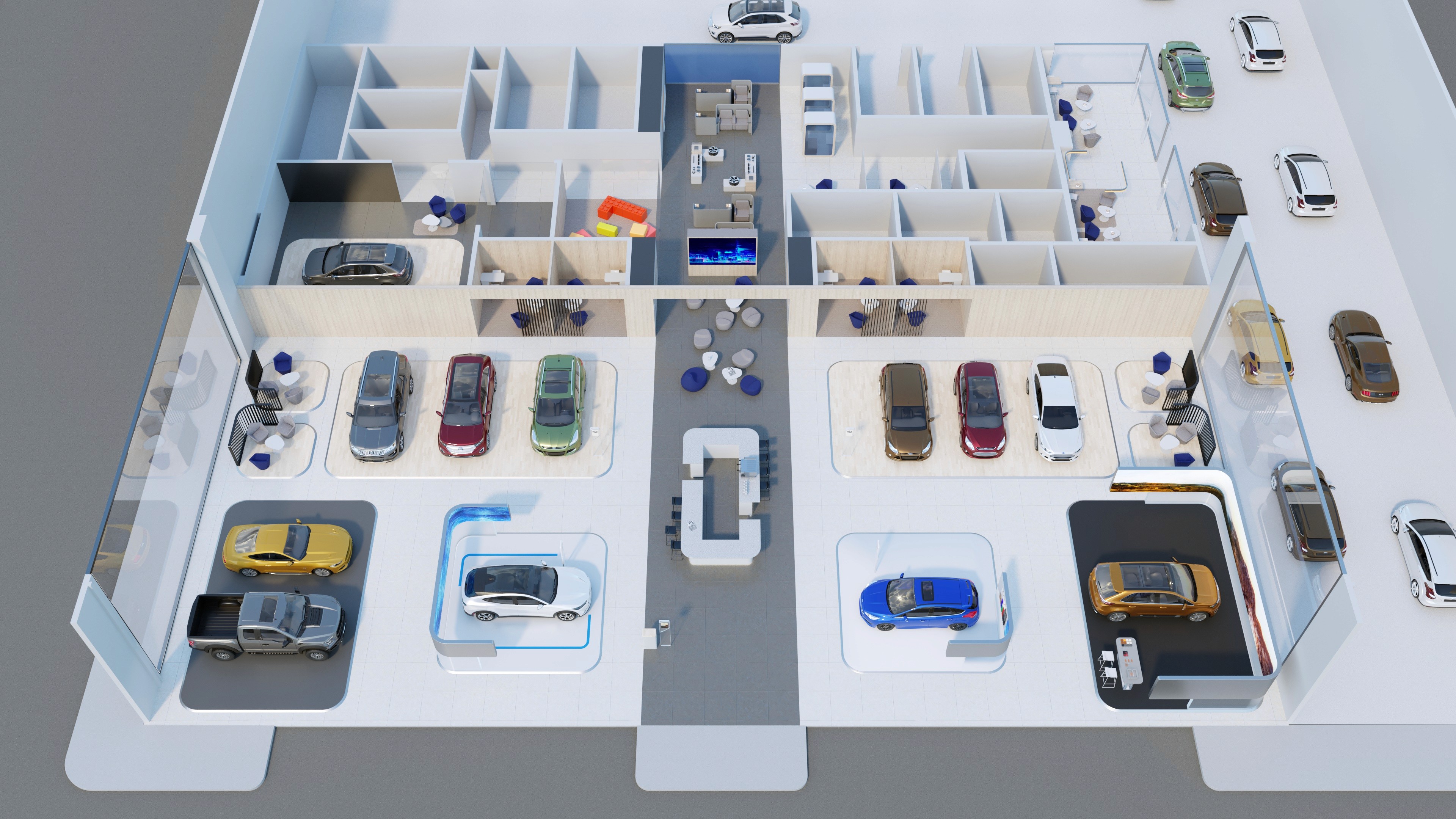 In de 3D-impressies komt het exterieur tot leven als een modern visitekaartje: een gebouw dat niet alleen functioneel is, maar ook de dynamiek en innovatie van Ford uitstraalt.