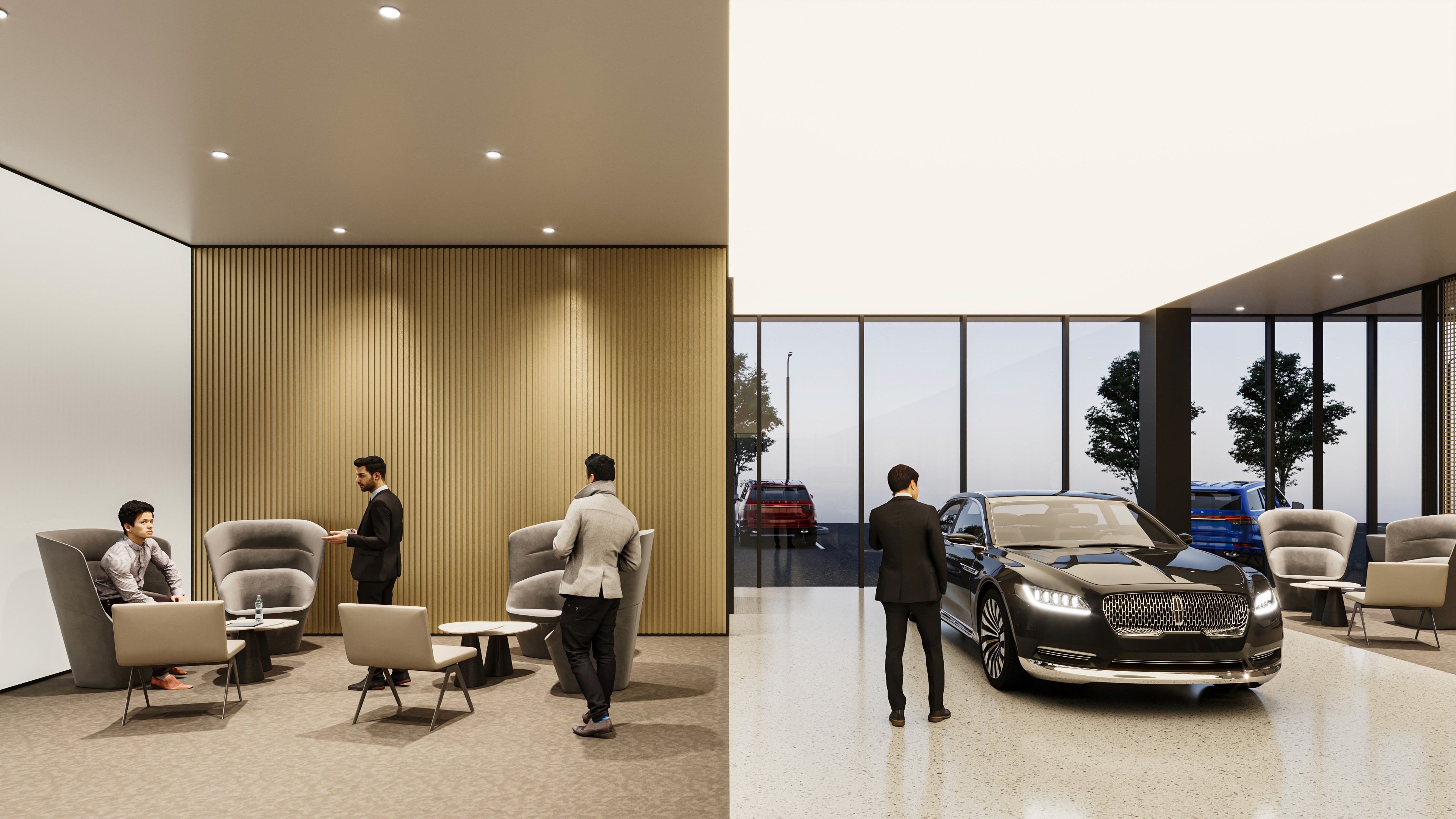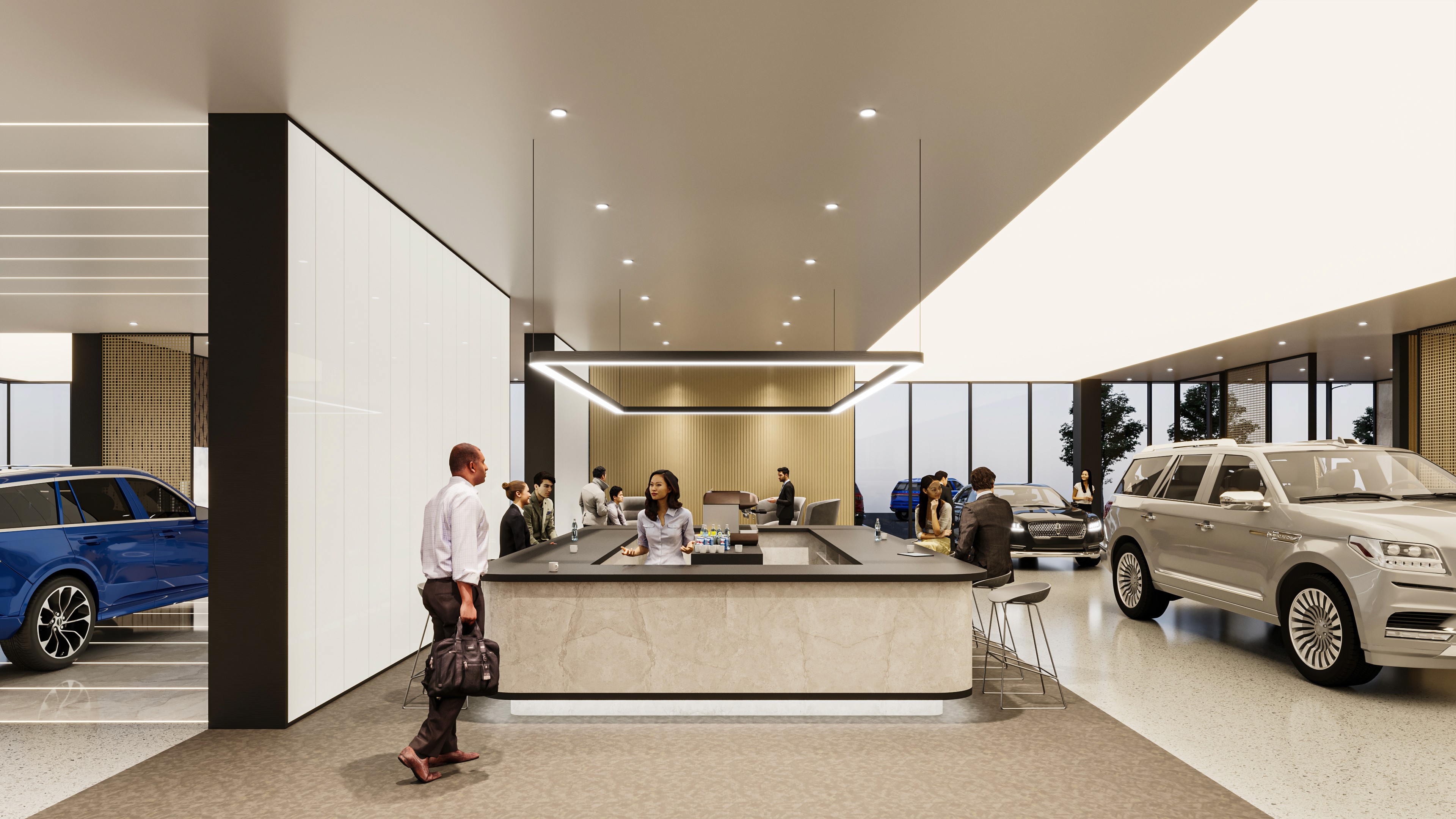 Voor de nieuwe flagshipstore van Lincoln, geopend in Shanghai, heb ik een 3D-impressie gemaakt die de internationale allure en het luxe karakter van het merk benadrukt