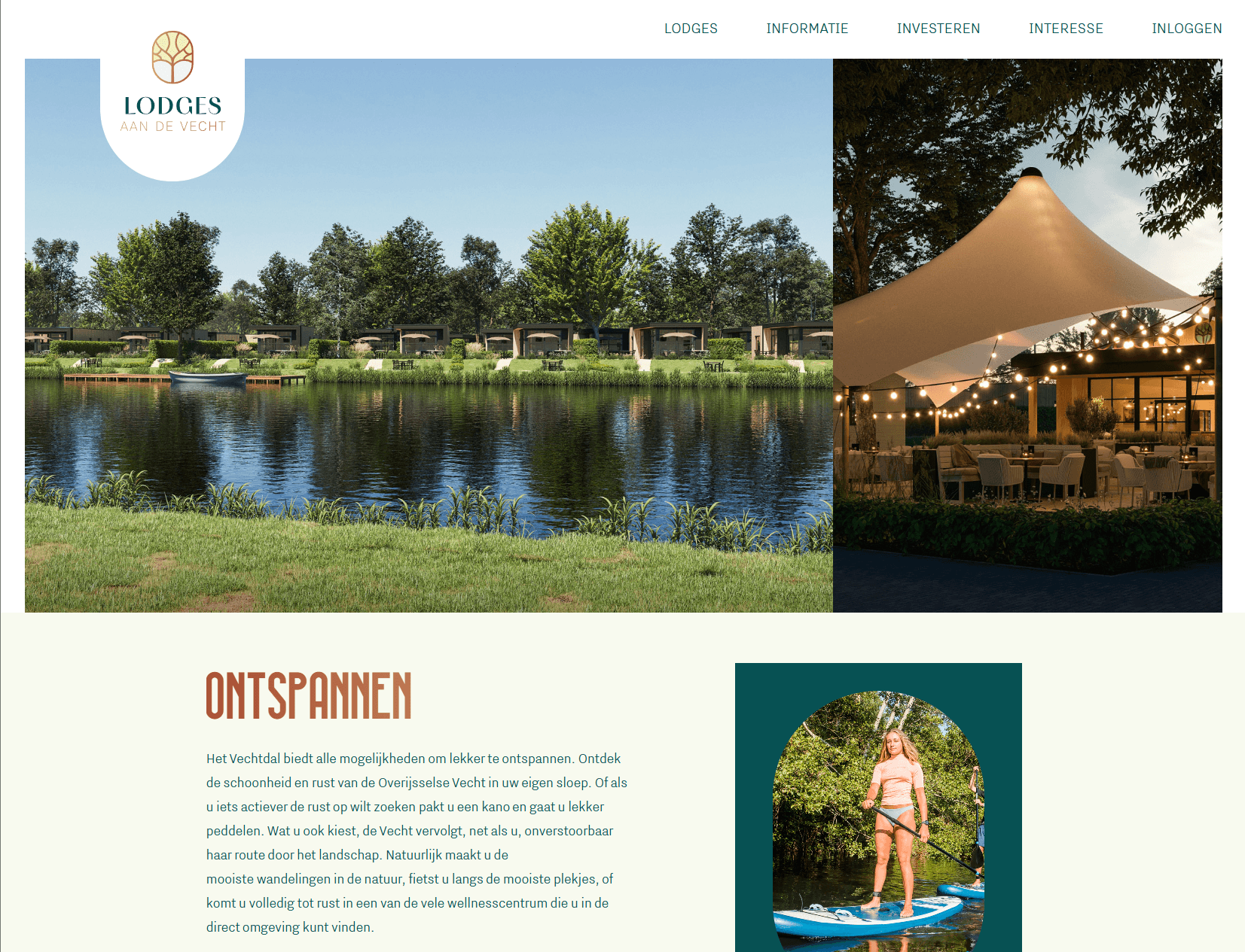 Dankzij de 3D-impressies wordt de beleving van www.lodgesaandevecht.nl al voelbaar vóór realisatie: een plek om te ontspannen, te genieten en even helemaal tot rust te komen aan de Vecht.